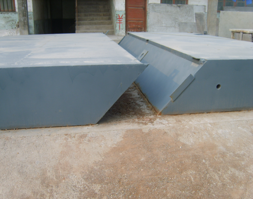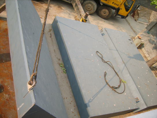 探傷室防護門(mén)門(mén)體內部鋼骨架采用GB槽鋼10mm厚鋼板作表面,兩側采用20mm厚鋼板作側面,焊接成型,內筋為45°,現場(chǎng)拼接,斜角3㎜冷鋼板焊接,門(mén)體內部采用金屬鉛板及復合鉛板復合用法