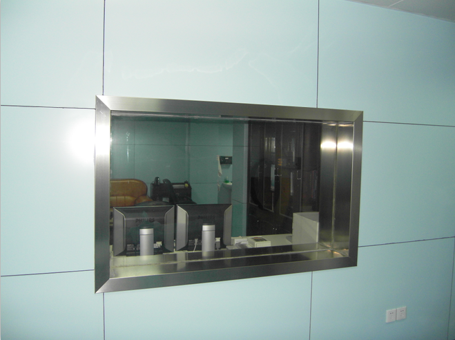 透光率達到 90%以上,折射率:1.755,比重≥4.8g/m3。穩定性達到 A 級。無(wú)雜質(zhì)、氣泡、霉點(diǎn),鉛玻璃表面作抗劃傷、抗破碎處理,長(cháng)時(shí)間使用不變色、不發(fā)烏。觀(guān)察窗框選用專(zhuān)用不銹鋼防護框,能阻擋墻體對鉛玻璃的壓力,內襯純鉛板,防護當量滿(mǎn)足設計要求,且不易變形,有良好視野。表面經(jīng)抗劃傷、抗破碎處理,玻璃與窗框防護可靠。防護當量根據各機房防護條件和要求確定為3mmpb-5mmpb。